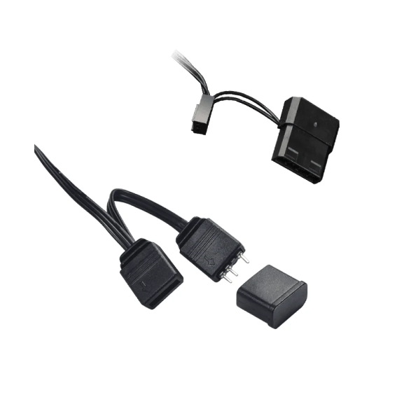 Incluye conectores 3 pines + Morex 4 pines para alimentación y ARGB 3 pines M/F para iluminación. Su marco negro con aspas oscuras y juntas antivibración aseguran un rendimiento confiable y un montaje estable.